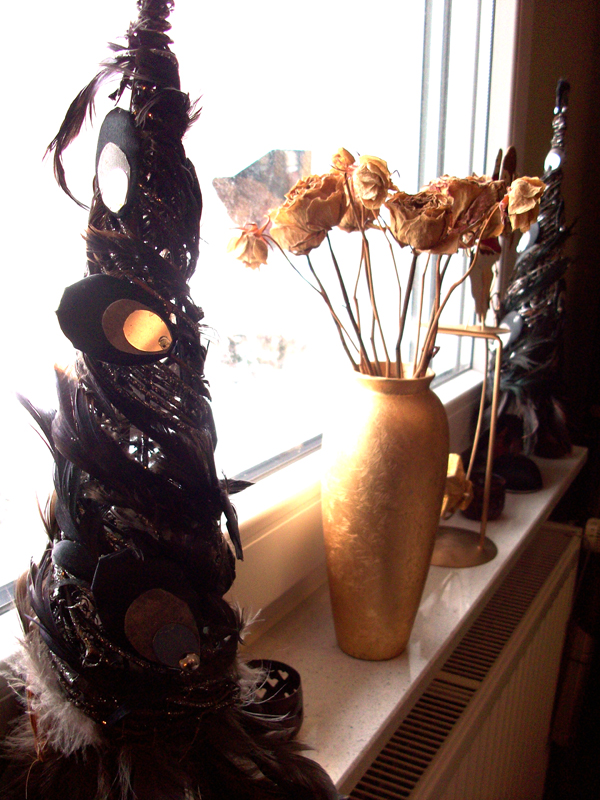 They look beautiful! They look a bit like trees made of feathers, fabrics and pearls.